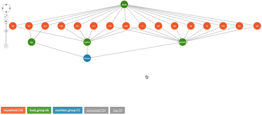 아래의 그림에 나타난 예시는 WFP의 지원금(식비 지원)을 받는 인구의 식습관에 관한 연구를 모델링으로 표현했다.