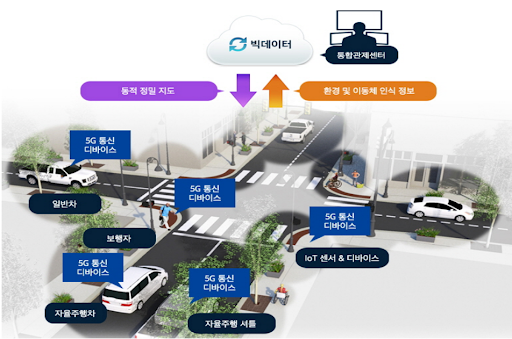 5G는 자율주행차가 순식간에 결정을 내릴 수 있게 하여 안전성을 보장한다. 자율 주행의 핵심적인 기술로 언급되는 V2X(Vehicle to Everything) 기술은 건물, 가로등, 다른 차량, 심지어 스마트시티의 보행자와도 연결할 수 있어 문제 될 만한 요소에 신속하게 대응하고 전체적인 교통 통제를 개선할 수 있다.