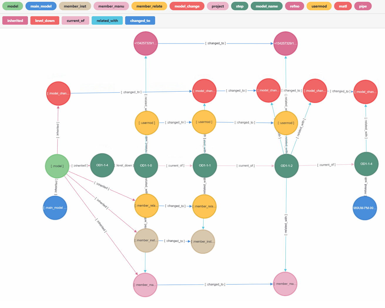 각 모델의 제품은 어떻게 준비가 되었는지에 대한 단계(step)가 있다. 특정 모델이 어떤 구성원과 관계가 있는지, 어떤 프로젝트에 속해 있는지를 분석해 볼 수 있다. 예를 들어, 특정 상선의 도면이 몇 번을 거쳐 수정되었는지, 또는 어떤 자재 부품이 교체되었는지를 정확히 분석해 문제를 해결하거나 업무의 효율을 높일 수도 있는 것이다.