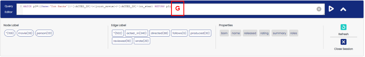 H) 노드 레이블은 영화와 사람을 포함합니다. 엣지 레이블은 행동을 보여주는데, ‘acted in’, ‘directed’ 등을 보면 이 사람이 영화와 어떤 관계를 맺고 있는지 파악할 수 있습니다. Properties는 각 노드의 특징을 보여주는데, 출생연도, 이름, 영화 출시연도를 확인할 수 있습니다. 각각 노드와 엣지, 그리고 프로퍼티를 눌러서 영화와 배우 및 감독들의 연결점을 직접 찾아보세요!