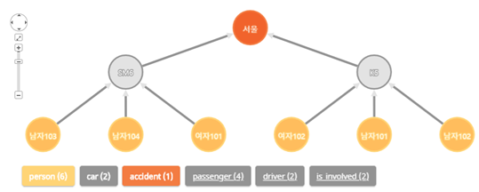 | MATCH (Accident:accident)<-[link_1]-(Car_1:car)-[link_2]-(Person_1:person) WHERE Accident.지역 = '서울' RETURN *; |