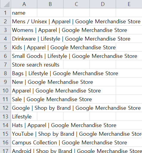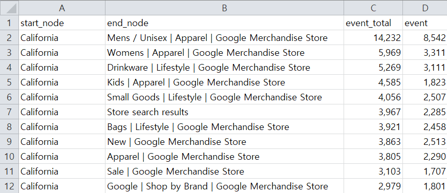 Edge CSV를 만드는 것은 생각보다 더 간단합니다. 구글 애널리틱스에서 가져온 원본 파일을 그대로 사용하거나 사본을 만들어 AGViewer가 이해할 수 있는 방식으로 행 이름을 변경하면 됩니다.