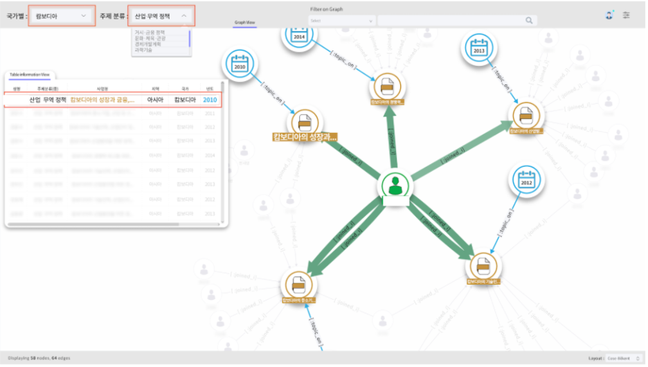 그래프 분석이란 기존 테이블 형태의 데이터 집합에 대한 분석이 아닌, 노드와 엣지 형태로 구성된 그래프 데이터를 분석하는 행위를 의미합니다. 그래프 분석을 통합 데이터의 분석에 적용 시, 기존 통계 분석으로는 판단할 수 없었던 새로운 관점의 분석 서비스에 접근할 수 있습니다.