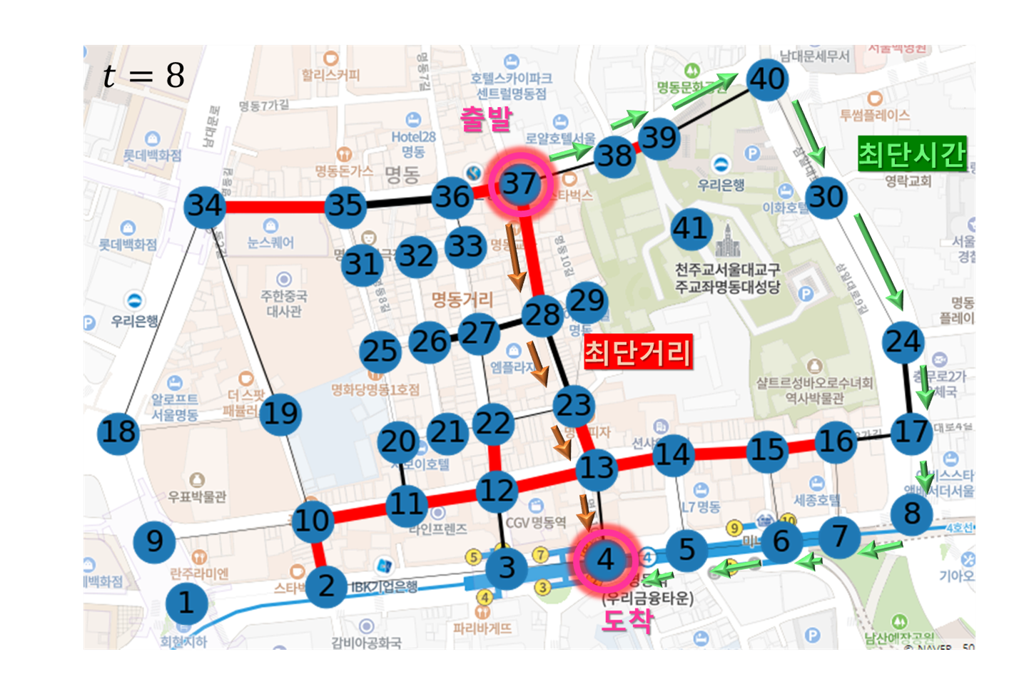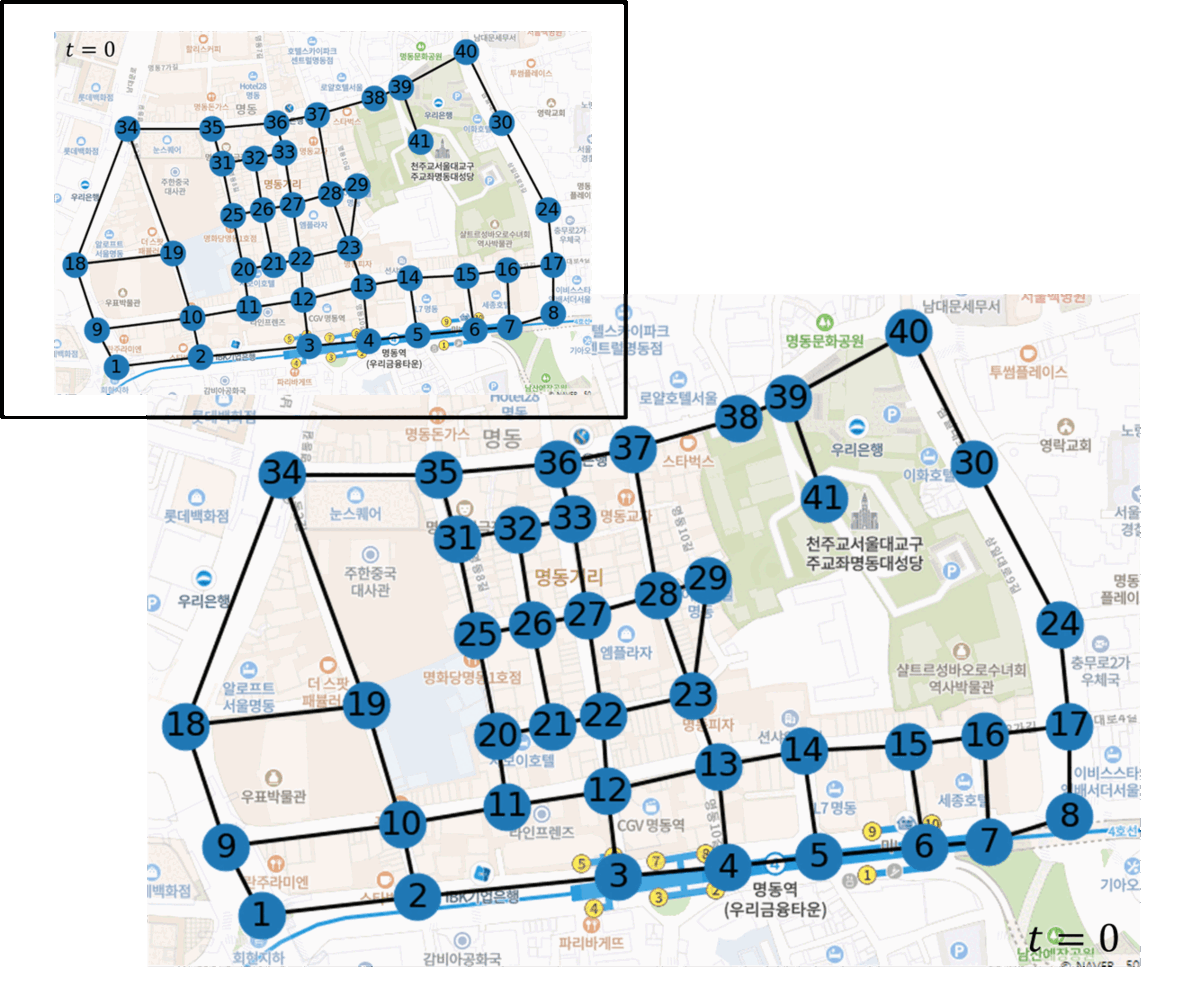 명동 지역에서의 그래프 시뮬레이션
