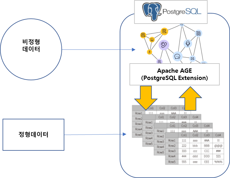 이것을 위해서 다양한 확장성을 지원하는 PostgreSQL을 기반 데이터베이스로 활용하고 PostgreSQL의 Graph Extension 인 ApacheAGE를 추가하여 GOLAP을 지원하는 환경을 구축할 수 있습니다.