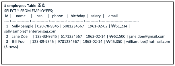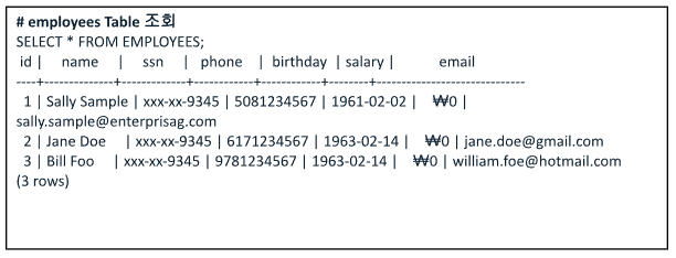 Data Redaction을 적용한 테이블 조회 결과