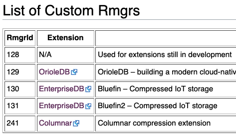 Custom WAL Resource Manager (rmgr) Extensions can register their own custom WAL resource managers to support custom redo, physical replication, and logical replication/decoding. Each resource manager needs to register using a unique ID (across all extensio