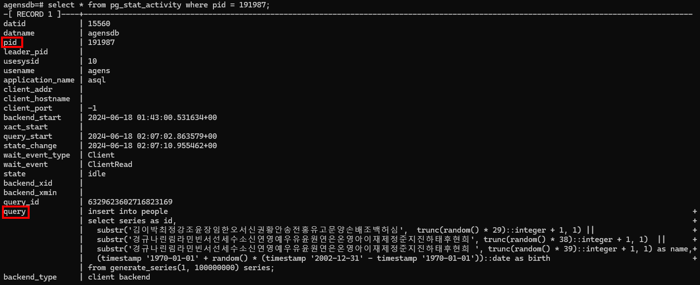 특히 DB 서버 프로세스의 PID 값을 확인하여 해당 프로세스의 리소스 사용량을 집중적으로 모니터링해야 합니다.