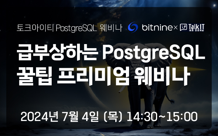 | 7/10(수) 오후 2시, 세 번째 "비트나인 PostgreSQL 기술 웨비나"에 초대합니다. (0) | 2024.06.28 |