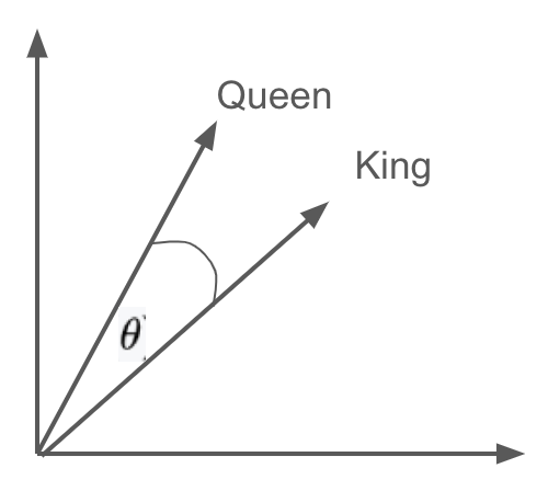 뒤에서 임베딩을 다루기 전이지만, 자연어처리(NLP) 모델 Word2Vec에서, 예시로 “Queen”과 “King” 두 단어를 벡터화하면 다음과 같이 수치적으로 표현될 것입니다. 이 벡터들은 2차원 평면에서 아래에 나열된 수치와 같이 유사도가 높고(방향이 유사하게) 표현됩니다.