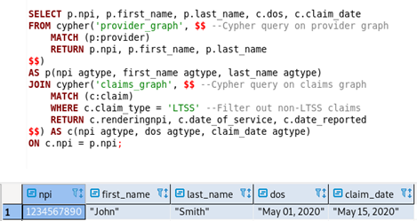 ● 타 openCypher 그래프 데이터베이스에 지원하지 않는 하이브리드 그래프 쿼리 기능 지원