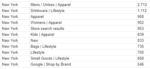 위와 같은 결과를 알아낼 수 있다면, 뉴욕의 방문자를 대상으로 어떤 상품의 웹사이트를 먼저 개선해야 하는지 알 수 있을 것으로 판단했습니다. 공통되는 페이지는 어떻게 하면 트래픽을 개선할지, 공통되지 않은 페이지는 어떤 마케팅 전략을 짜서 새로운 트래픽을 유도할지 대책을 세우고자 했습니다.