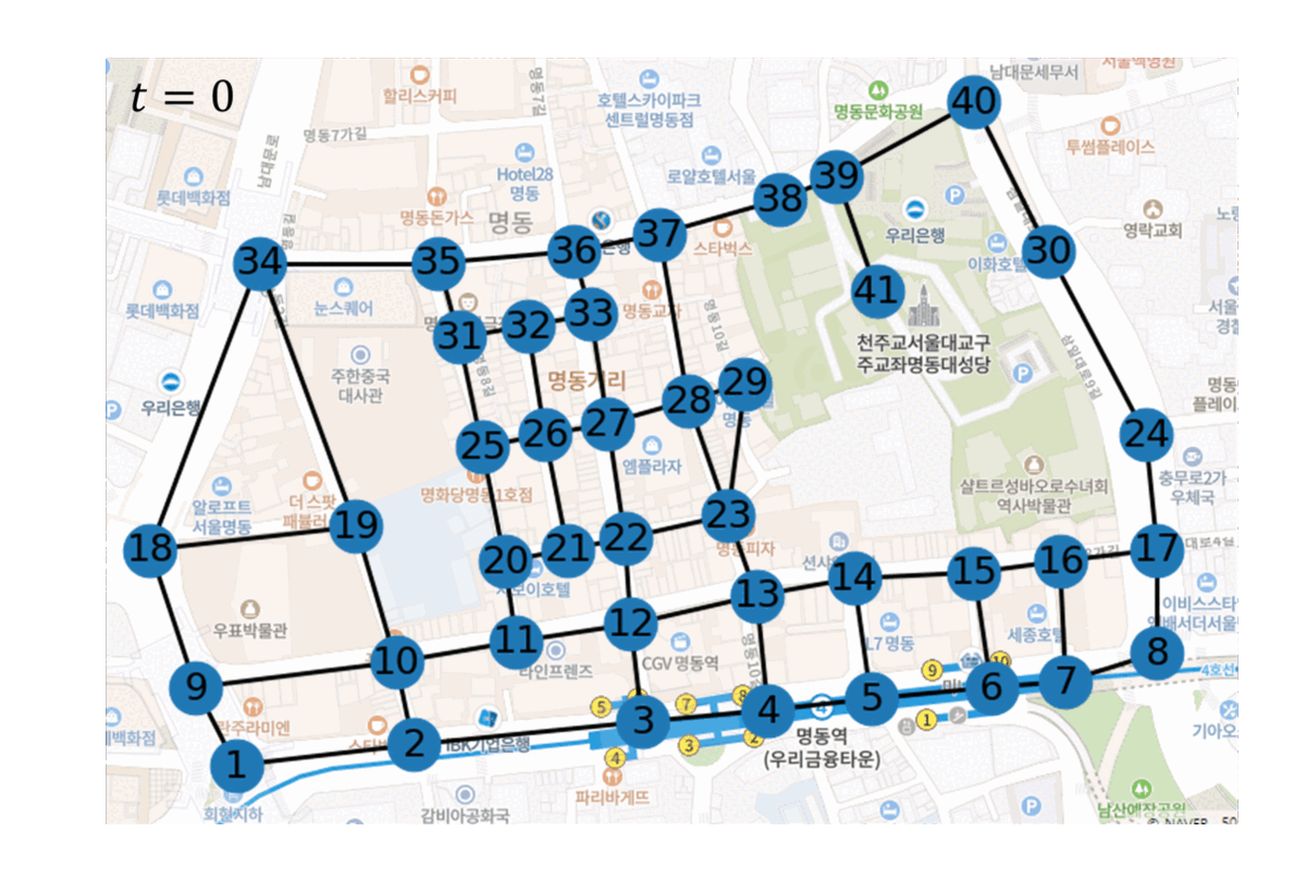명동 지역에서의 그래프 시뮬레이션