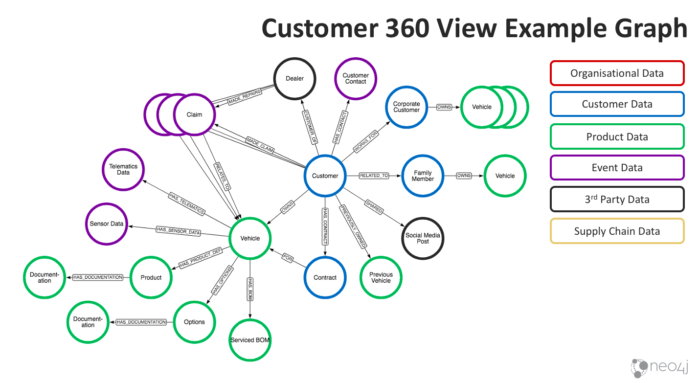 다양한 기업들의 밸류체인에 분절된 데이터들을 점과 선으로 연결하여 입체적인 구조로 시각화합니다. 이를 통해 직관적인 탐색이 가능해집니다. 그리고 이 데이터의 복잡한 연결 관계를 시각적으로 패턴화 하여 지식 체계를 단순화하는 것입니다. 여기에 실마리가 있습니다. 그래프 시각화의 가장 중요한 목표인 빠른 데이터 탐색으로 인한 분석이 가능해집니다. 근래 주목받는 키워드인 고객 360도 뷰(Single Customer View)(그림 3)의 핵심적인 내용과도 상통합니다.