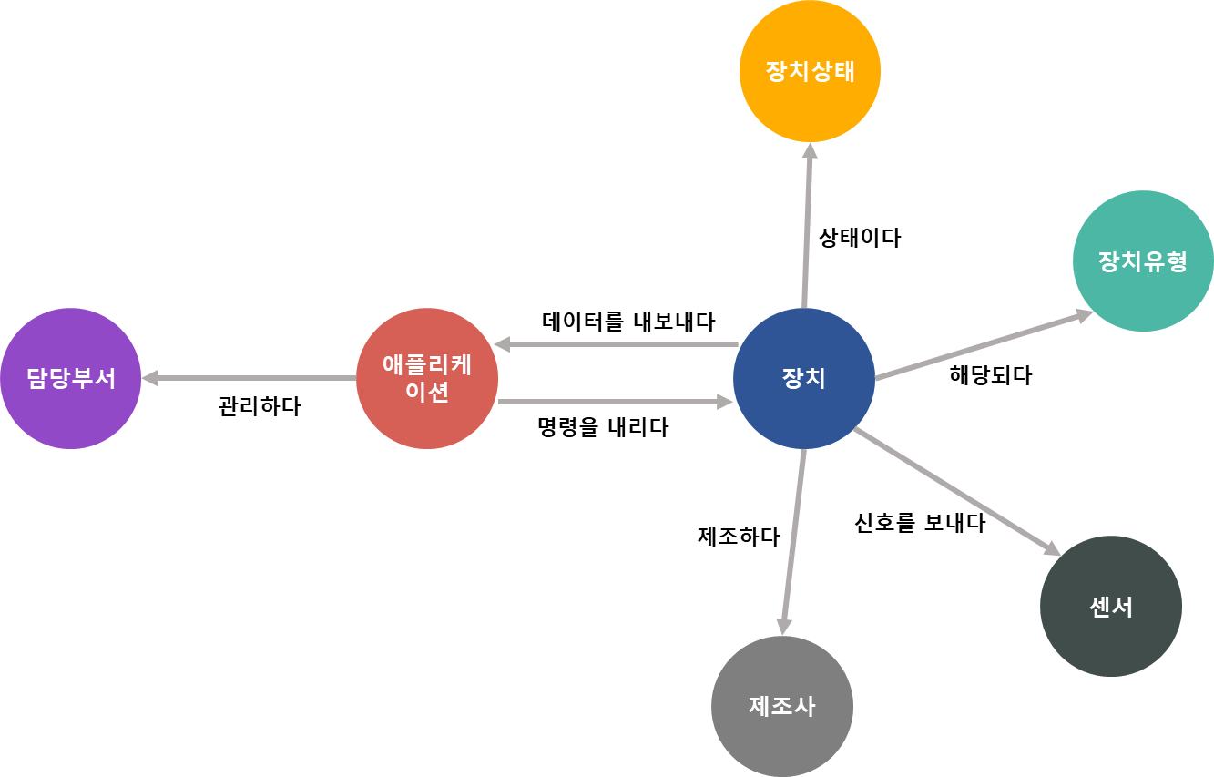 이와 같이 IoT 데이터를 그래프 데이터베이스로 관리하여 IoT 시스템에서 발생하는 문제사항을 빠르게 파악하기 위해 선행되어야 할 과정은 IoT 데이터를 그래프 형태로 모델링하는 것입니다.
