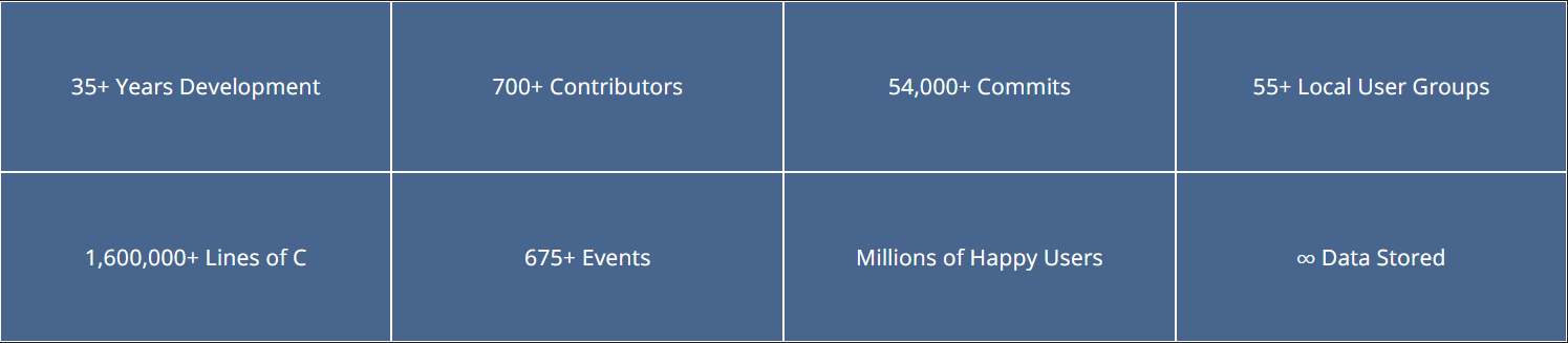 PostgreSQL은 30년 이상 개발된 안정성을 확보한 오픈소스 DB 로 Sybase, SQL Server, AWS Aurora 같은 상용 DB 개발에 영향을 미친 제품으로 오픈소스 중 가장 활발히 활동하는 글로벌 커뮤니티를 가진 제품이다.